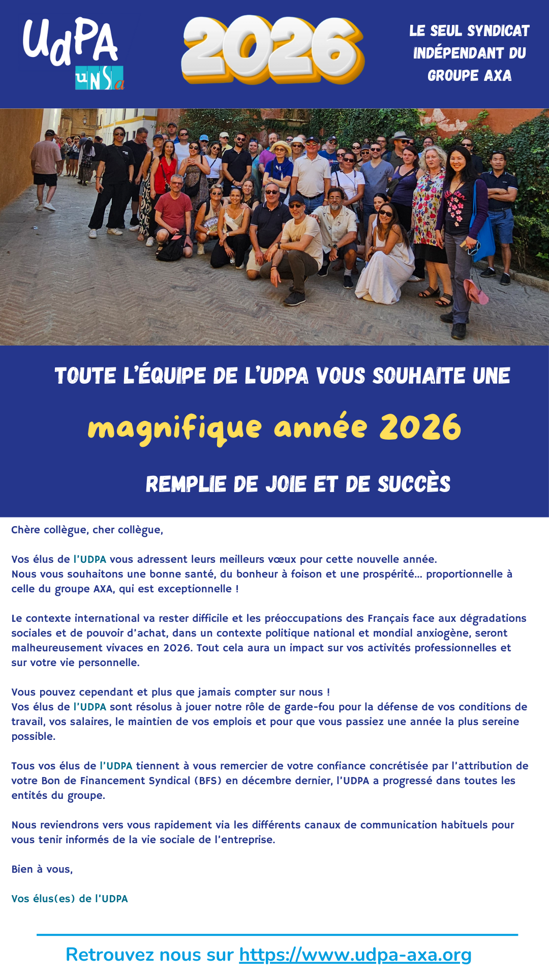 Toute l’équipe de l’UDPA vous souhaite une belle année 2026